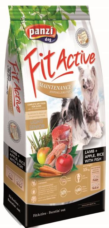 Pełnowartościowa, wysokiej jakości sucha karma dla psów. W pełni zbilansowana i zrównoważona do potrzeb zwierząt mniej aktywnych, starszych i/lub z nadwagą, wymagających mniej energetycznego pożywienia w celu utrzymania prawidłowej masy ciała. Dzięki właściwościom hipoalergicznym, pokarm można z powodzeniem stosować u zwierząt z wrażliwym układem pokarmowym, cierpiącym na reakcje alergiczne. Fit Active Hypoallergenic Light / Senior dostarczy pieskowi wszystkich najważniejszych składników odżywczych, w tym niezbędnych witamin i minerałów, aby zapewnić mu zdrowe i aktywne życie. Kluczowy składnik jakim jest jagnięcina, to źródło łatwo strawnego białka, delikatnego dla przewodu pokarmowego i dostarczającego wysoki poziom witaminy B12 wraz z cynkiem, żelazem i selenem. Witamina B12 i żelazo biorą udział w produkcji czerwonych krwinek, a także procesach metabolicznych. Cynk to jeden z podstawowych pierwiastków dla wielu innych ważnych procesów w organizmie, a Selen wspiera funkcjonowanie układu odpornościowego. Drugi istotny składnik pokarmu to ryby. Jest to nie tylko wysoko przyswajalne białko, ale także bogate źródło wielonienasyconych kwasów tłuszczowych omega-3 i omega-6. Dzięki nim sierść jest błyszcząca, piękna i zdrowa, pełniąc jednocześnie nieocenione funkcje, takie jak izolacja cieplna, ochrona przed promieniowaniem słonecznym czy innymi czynnikami atmosferycznymi. Właściwy balans i wykorzystanie niezbędnych kwasów tłuszczowych Omega-3 i Omega-6 jest ważny także dla układu odpornościowego i nerwowego. Suplementy w postaci chondroityny i glukozaminy zawarte w karmie wydatnie wspierają stawy, pozwalając zachować je w lepszej kondycji, a to bardzo ważne u starszych psów czy tych zmagających się z nadwagą. Warto podkreślić również dodatek w postaci jabłek. Owoce te są bogate w witaminę C i polifenole, wspomagając układ odpornościowy oraz obniżając poziom cholesterolu. Najważniejsze zalety karmy: Składniki: Analiza: Witaminy i minerały: Dawkowanie: